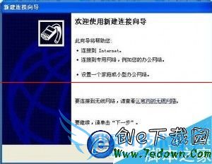 2、点击左边任务栏“创建一个新的连接”,在弹出窗口点击“下一步”
