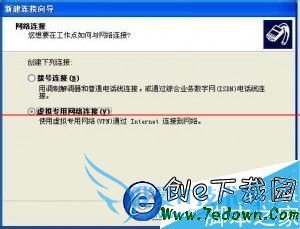 4、选择“虚拟专用网络连接”,点击“下一步”