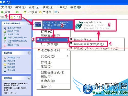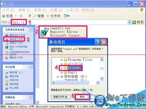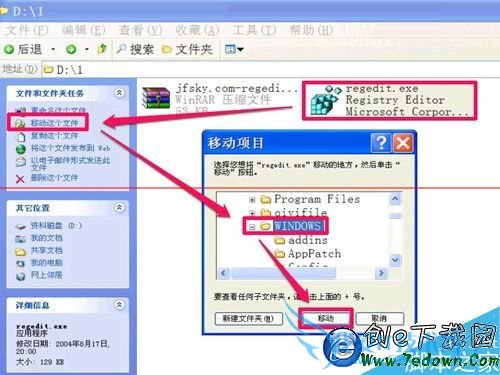 4、解压后,选择左侧任务“移动这个文件”或“复制这个文件”都可以,将解压出的regedit.exe移到C:\Windows\文件夹下。