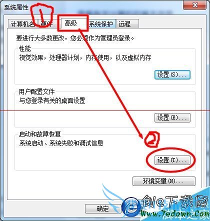 3、切换到“高级”选项卡,然后,点击“启动和故障恢复”中的“设置”。