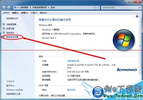 2、此时打开系统属性窗口。点击左边的“高级系统设置”。