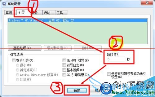 4、在“显示操作系统列表的时间”中,设置等待时间。等待时间一般设置在3~5秒,这样既可以保证启动时间,又可以有充足的时间作出选择。一路确定,即可生效。