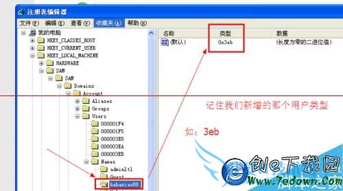 6、点击Names项中,我们新增的那个用户“hahaxiao88”。记住右侧的数值类型,如:3eb。