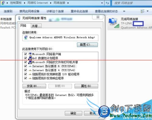 控制面板-->网络和Internet-->网络和共享中心-->更改适配器设置,右键当前的链接-->属性,勾选 Internet 协议版本 6 (TCP/IPv6),确定。