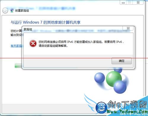 再次运行家庭组向导,如果看到以下提示,说明 IPv6 网络协议没有加载。