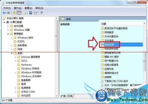 9、打开组策略?计算机配置?管理模板?系统?系统还原。
