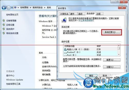 7、重启电脑,再去看一下,还原是否可以使用了?开始→控制面板→系统和安全→系统→系统保护