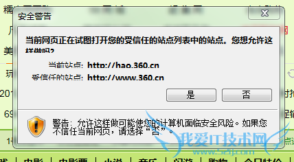 “当前网页正在试图打开您的受信任的站点列表中的站点。您想允许这样子做吗?”