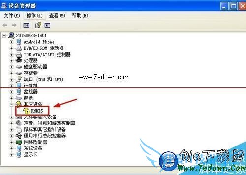 3、这里我们可以看到设备管理器中RNDIS设备这里出现问题,驱动不正常。