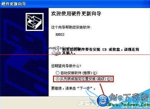 6、硬件更新向导中,我们选择从列表或指定位置安装,然后点击下一步。