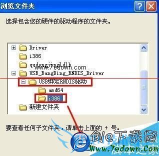 8、现在找到我们刚才下载到电脑上的“USB绑定RNDIS驱动”里面点击I386.当然有些时候我们需要点击这里的AMD64,大家根据情况选择,哪个可以使用就用那个。
