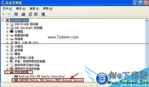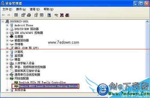 13、这个时候我们已经安装USB绑定RNDIS驱动完成,现在已经可以用手机USB共享网络让电脑通过数据线和手机连接进行上网,当然网络连接中也可以看到电脑现在连接的设备。