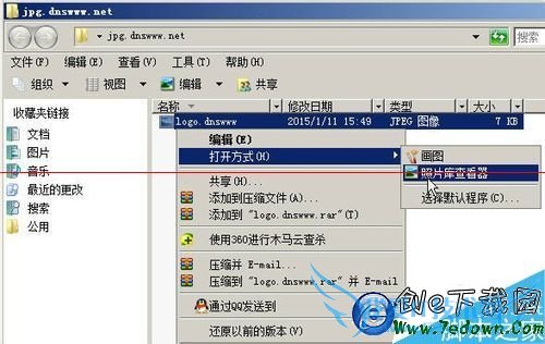 3、我们再次尝试,右键单击这张jpg图片,选择打开方式--选择照片库查看器,可结果还是不行;