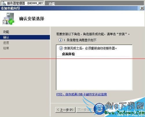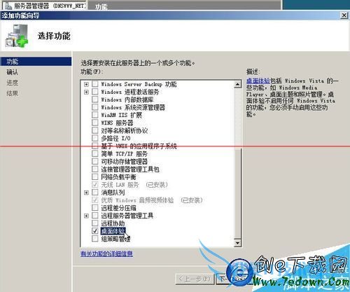 6、在弹出功能向导对话框,找到“桌面体验”,勾选它,然后单击“下一步