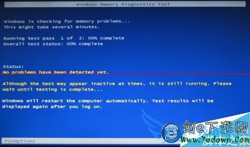 6、重启电脑,自动进入内存诊断进程(稍后会有进度条出现),耐心等待自动完成。