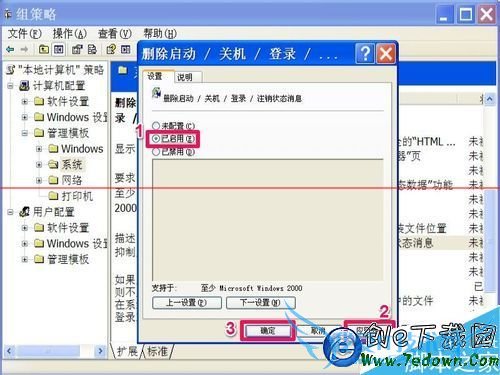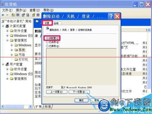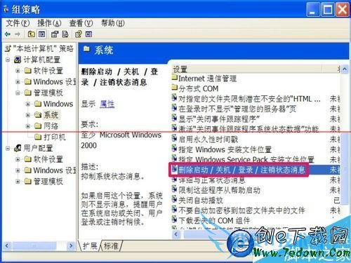 1、有的系统版本的“删除启动/关机/登录/注销状态信息”这一项为“关机选项”,可根据自已的操作系统来设置。