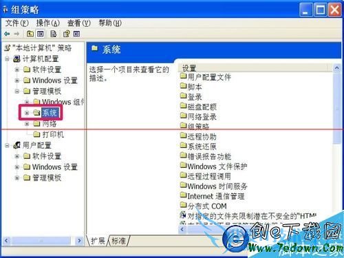 4,再打开“管理模版”的子项,在其中找到“系统”这一项。