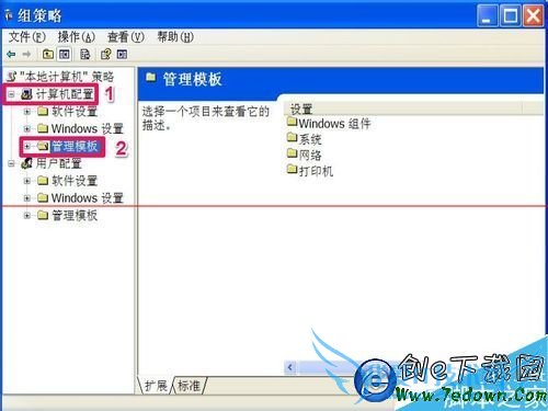 3,进入组策略窗口后,先找到“计算机配置”这一项,然后在其子项中找到“管理模版”。