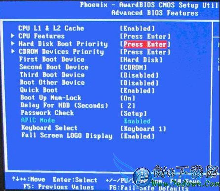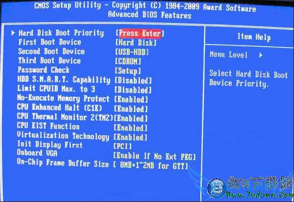 上图2:在进入高级BIOS设置(Advanced BIOS Features)界面后,首先要选择硬盘启动优先级:Hard Disk Boot Priority。