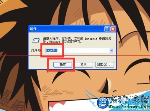 2、【运行】的窗口,打开注册表输入“regedit”的命令,然后点击“确定”。
