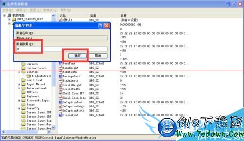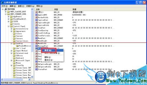 5、WindowMetrics在右边找到“MinAnimate”,鼠标右键点击修改。