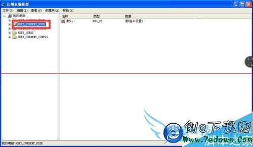 3、【注册表编辑器】的窗口,找到“找到HKEY_CURRENT_USER”。