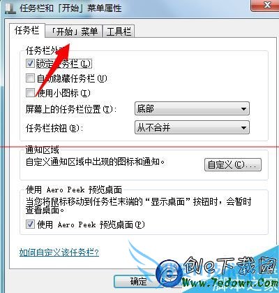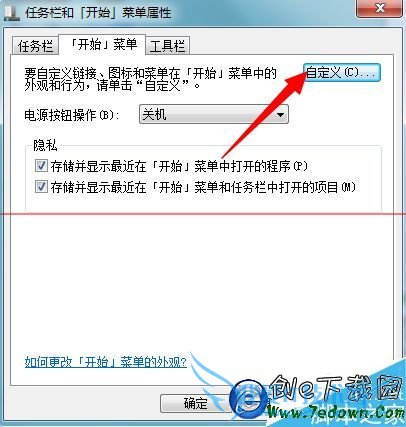 4、进入“开始菜单”界面,点击右上方【自定义】