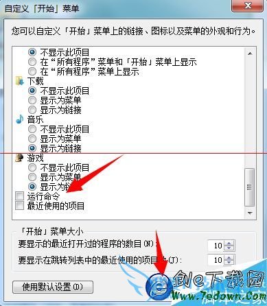 5、在设置中,勾选【运行】命令,然后点击确定,保存