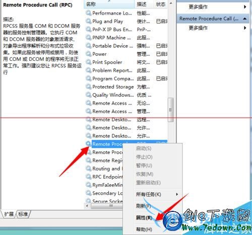 3、在右方服务列表中找到【Remote Procedure Call (RPC)】服务,右键点击选择【属性】