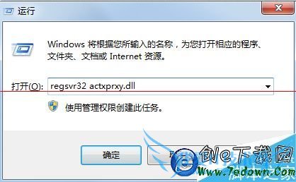 2、在运行对话框输入 regsvr32 actxprxy.dll 点击确定,进行注册,等待弹出注册成功对话框点击确定
