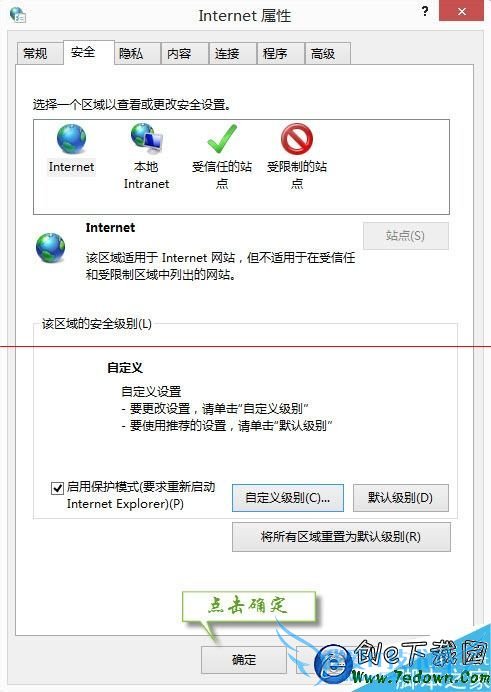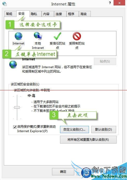 2、点击【安全】-Internet-【自定义级别】;