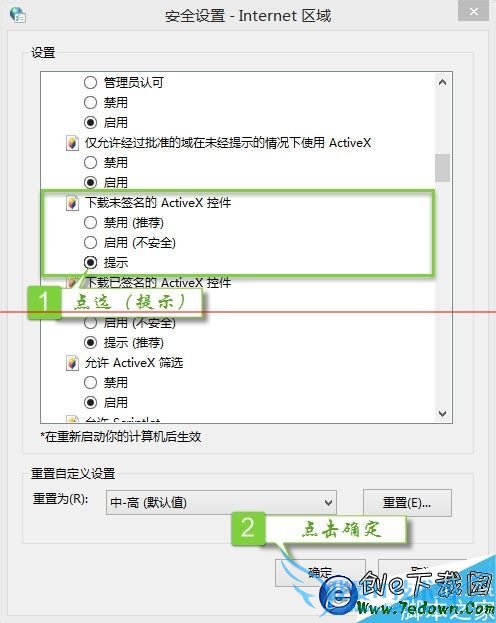 3、找到【下载未签名的Active X控件】,点选(提示);