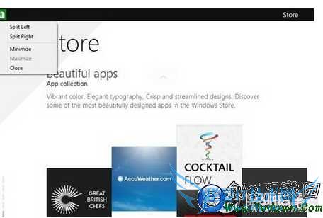 在Windows 8.1 Update预览版中,我们还看到Metro界面可以支持更多鼠标操作,你可以直接使用鼠标来进行多窗口设置,或是关闭Metro窗口,十分方便。