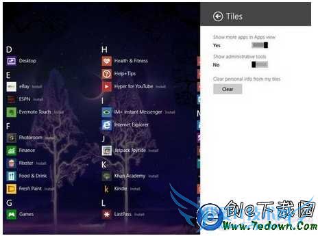 在Windows 8.1 Update中,所有应用的总览界面也进行了一些微调,新增了“显示更多应用程序”功能,可以自动调节图标尺寸,让你在一个屏幕中看到所有安装的应用程序。