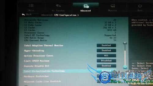 这款CPU支持VT-x,但这款主板却没有这个选项,至少目前4404版本的BIOS设置中没有。