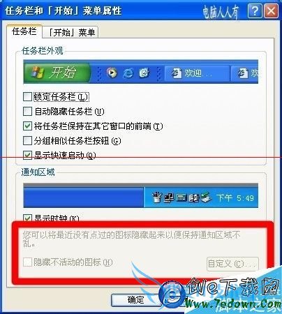 2、任务栏通知区域的自定义菜单不可用(灰色)