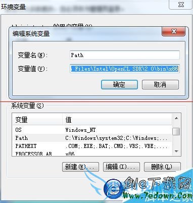 7、进入path变量编辑界面,将%SystemRoot%\system32;%SystemRoot%;%SystemRoot%\system32\WBEM输入进path变量内,然后确定。问题解决。