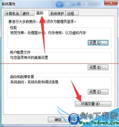 5、在弹出的系统属性对话框,点击上方的【高级】标签,然后打开右下角的【环境变量】