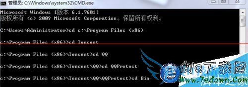 首先从键盘输入cd c:\Program Files (x86),按enter键;再从输入cd Tencent,按enter键,以此类推直到Bin。(如图所示)