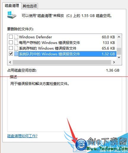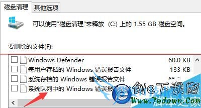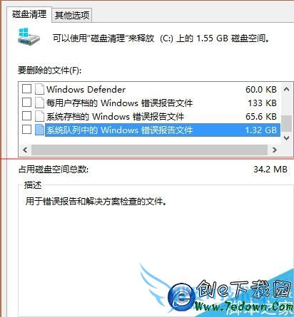 6、此时在“要删除的文件选项”可以看到系统队列中的windows错误报告文件