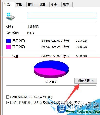 2、进入系统属性对话框,点击右下角[磁盘清理]