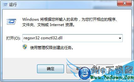3、最后在打开的运行对话框中输入“regsvr32 comctl32.dll”,回车之后即可。