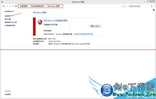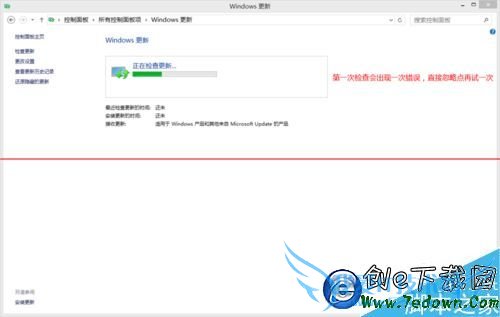 5、这个时候再次检查更新,第一次可能会仍然出现8024402F错误,不过不要担心,再试一次即可。