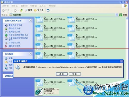 6、当需要这些备份的注册表时,可以找到当时保存的位置,双击给保存的备份添加到注册表即可。