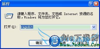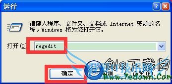 2、点击“运行”会出现一个小窗口,输入regedit(打开注册表),然后点击下面的确定。