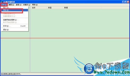 4、在【注册表编辑器】的页面中选择文件,然后选择【导出】。