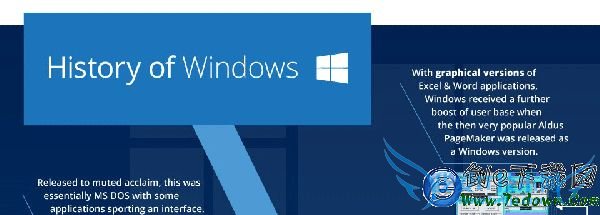 微软的Windows系统至今已经发展超过30多年,近日MicrosoftTraining通过信息图的方式回顾了自1985年的Windows 1.0系统开始至今的发展历程,在信息图中我们还看到了即将于今年7月29日正式推出的Windows 10系统,并对每个版本更迭进行了简短的评论。