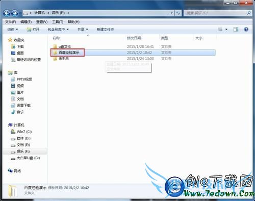 1、首先我们进入想要删除文件的硬盘,如我这f:\盘下的百度经验演示。