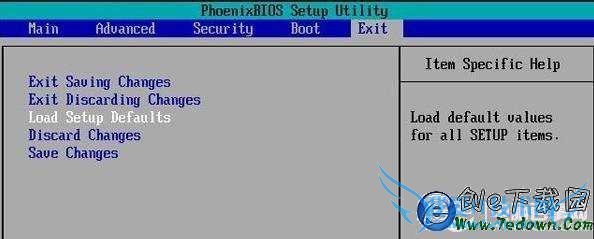 第二步:选择【Exit】菜单下面的【Load Setup Defaults】并回车,选择【Yes】之后,再次回车。