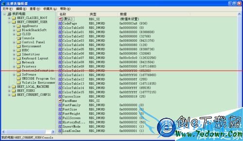4、然后给“HKEY_CURRENT_USET”这一项展开,找到“Console”在”Console“这一项,看右边的名称是否能够找到“CodePage”。